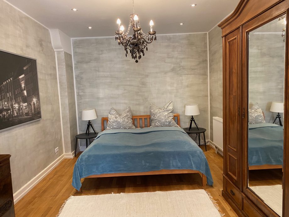 In der Schlafnische befindet sich ein Doppelbett, 180 cm × 200 cm, großem Kleiderschrank mit drei Schubladen ,Wäschefächern und großzügige Möglichkeit seine Kleidung auf Kleiderbügeln unterzubringen.