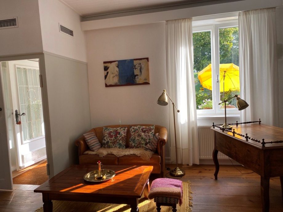 Das Studio hat eine Größe von 90 qm, mit dem alten Dielenboden vom ehemaligen „Bahnhöfle“ und dem originellen Eingang mit den alten Schwingtüren.